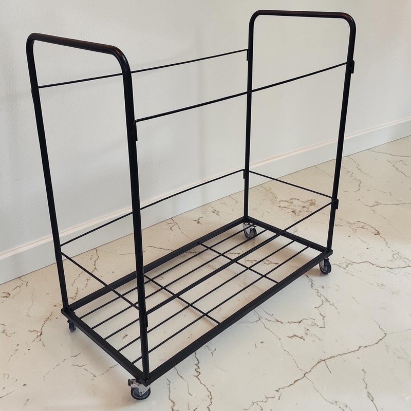 Composición: dos laterales de tubo de 25mm con espesor de 1.5 mm., reja soldada a marco de tubo de 25 x 25 mm con pivotes para unirse con los laterales y cuatro varillas de unión. No necesita herramienta para montaje. Pintado en negro.