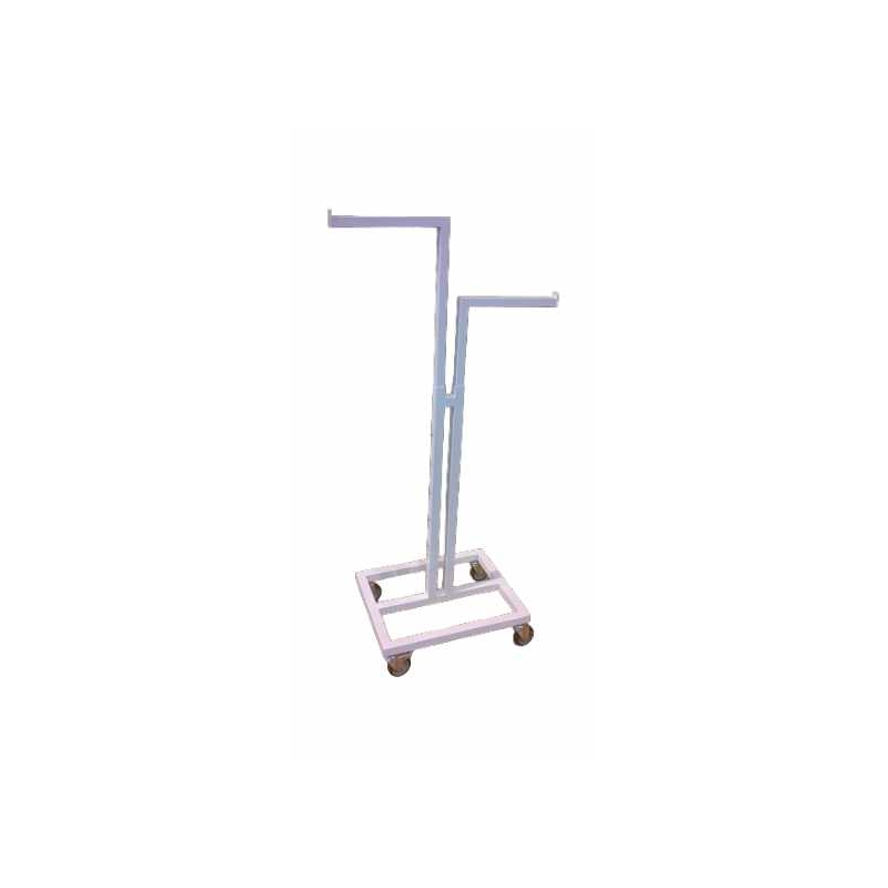 Perchero hecho a medida de tubo cuadrado, con dos brazos que se regulan independientemente.