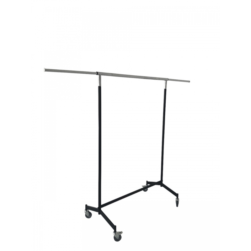 Perchero industrial apilable de gran resistencia tiene altura fija de 160 cm, anchura de cabezal de 110 cm extensible hasta los 206 cm y el ancho de 59 cm +/-.
