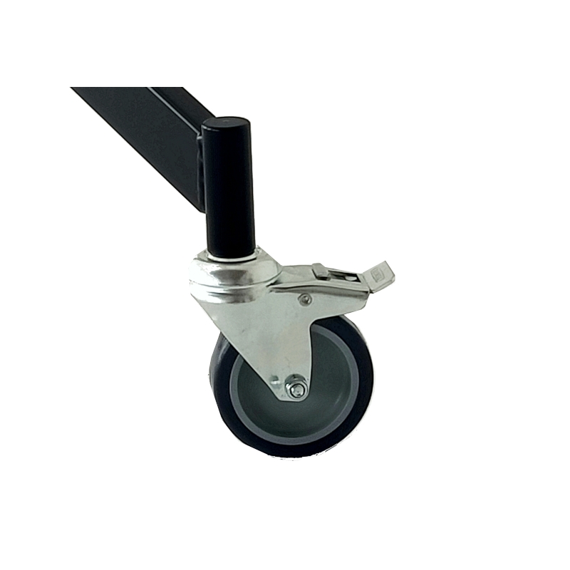 Con una altura de 160 cm y una longitud de 110 cm extensible hasta 206 cm. Con ruedas de goma de dos de ellas con freno.